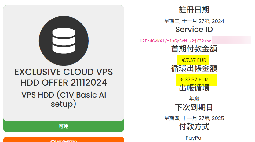这家不知道啥时候出来的oneman车库云,硬盘可能是从垃圾堆里掏出来的,c1vhosting HDD 750G中盘鸡这款配置为2C2G10T1000M,价钱为8.99欧元/年。这配置这价格就是灵车漂移,那也是漂得好,自愿得好吧。也是吃灰了一年了,期间各种不稳定,各种卡死,还是装模作样脚本跑上一跑放生了吧。