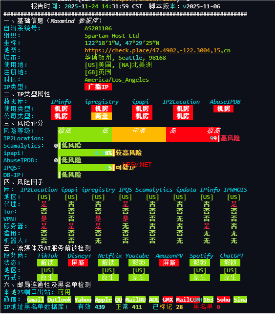 IPV4 位置 : Seattle / Washington / US